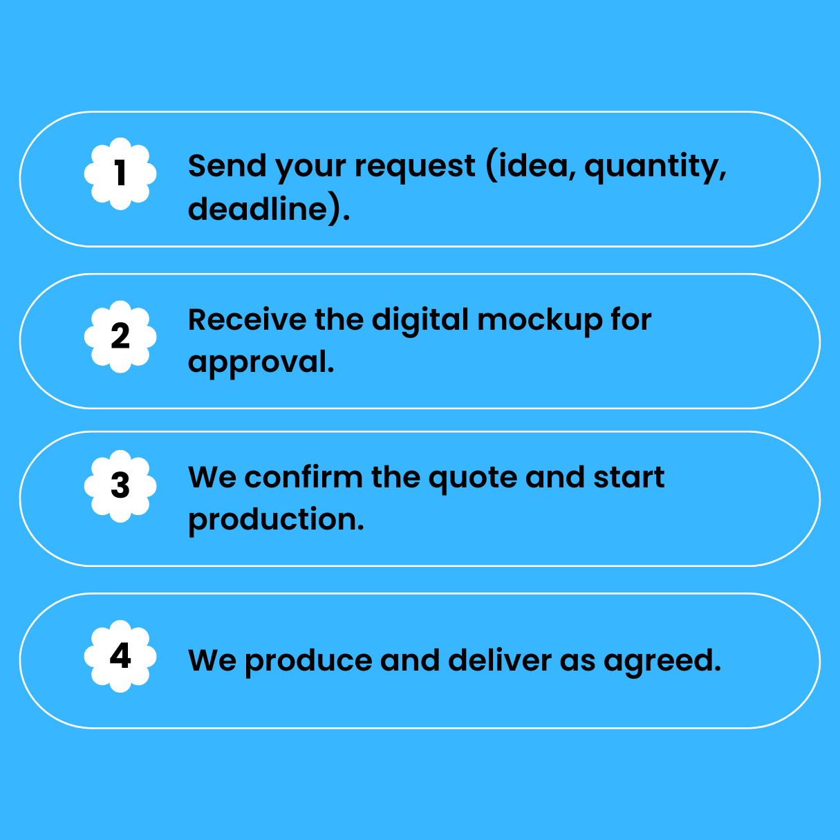 Antes de produzir, enviamos um mockup digital para validação de design, cores e logotipo.
